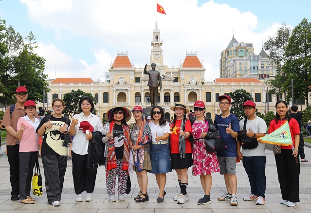 Du khách tham gia tour đi bộ tham quan TP.HCM của BenThanh Touris